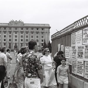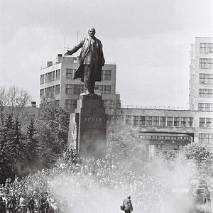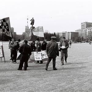 Ukraine’s main square was not meant to be a free political space. After being destroyed during World War II, Khreshchatyk and cosy imperial Dumska Square, cleared of ruins, were significantly expanded and turned into the centre of Stalinist ideological architectural ensemble. Khreshchatyk became the main axis of party processions, and Maidan Nezalezhnosti (back then named Kalinin Square and later The October Revolution Square) — a place for official meetings involving top leaders of the Ukrainian Soviet Socialist Republic. In 1977, a massive Lenin monument was erected here to mark the changes. In 1990, for the first time in the political history of modern Ukraine, the square as the most visible and central part of Kyiv became the heart of the public protest representing a social group that had been left out of the public sphere. That was the student Revolution on Granite. For the first time protesters ‘occupied’ Maidan Nezalezhnosti with tents and were permanently present there (setting up a tradition). Later the square became the main place to represent public protests, the largest of which include Ukraine without Kuchma (2001), the Orange Revolution (2004) and, of course, events of 2013-2014. Maidan, however, was not suitable for this spatially. It remained a large socialist square, divided by the wide road.